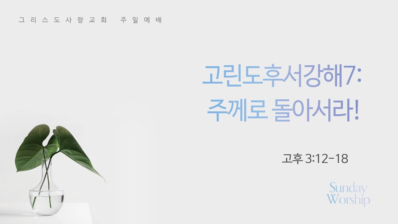 2026/03/08 고린도후서강해7: 주께로 돌아서라! (고후 3:12-18)